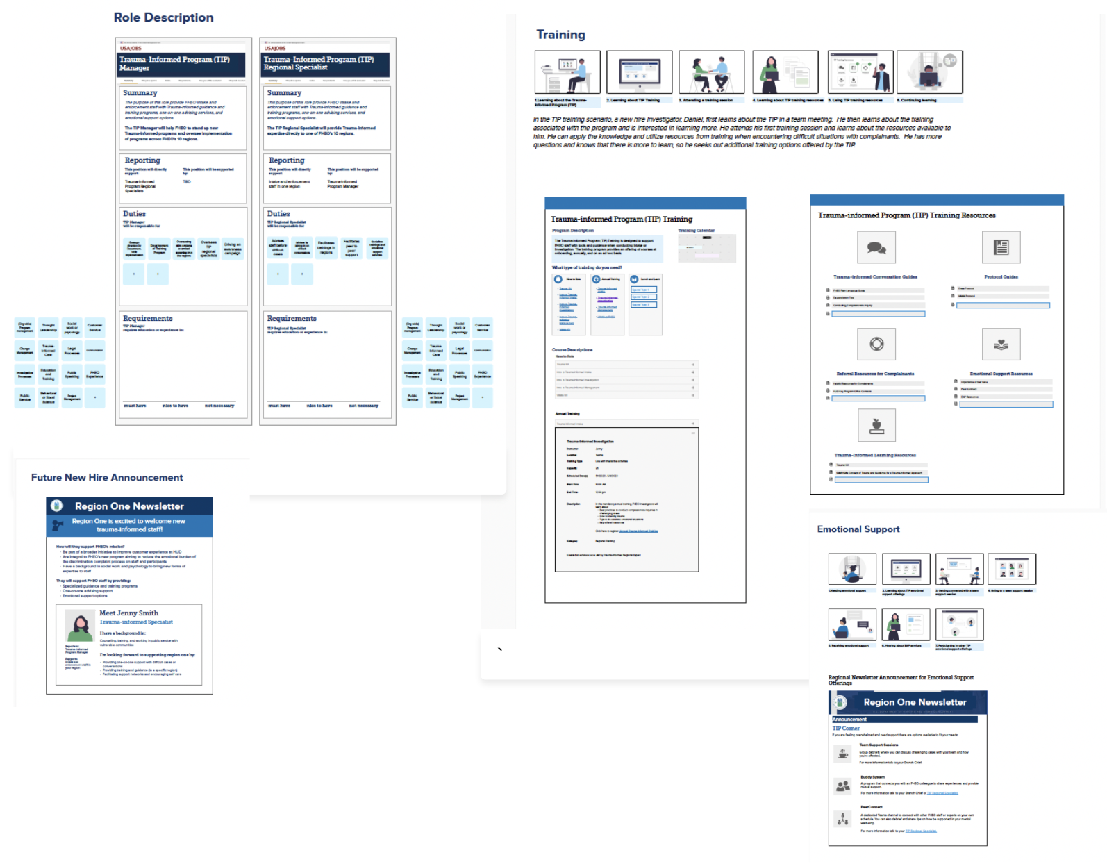 Based on this key insight, we embarked on research with staff and on a design project to focus on solutions for FHEO to better respond and engage with people experiencing trauma.